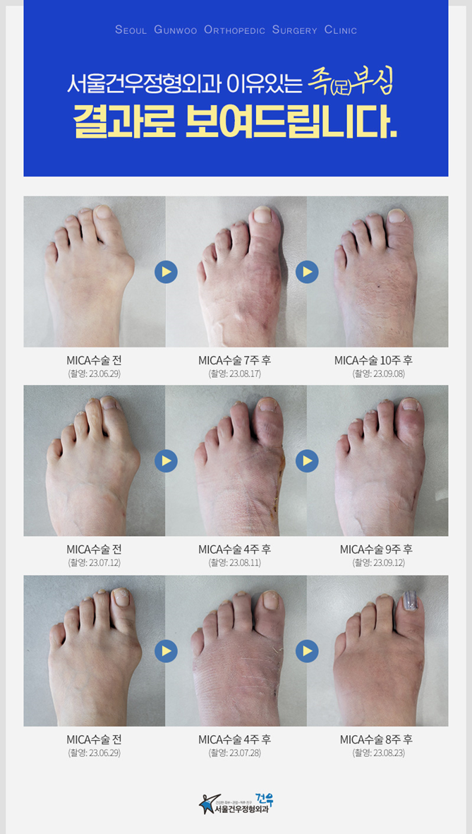 무지외반증수술병원 미카수술 QnA 무지외반증은 발바닥이 안으로 들어가는 변형성 발목 관절 질환으로, 통증과 불편을 유발할 수 있습니다. 이를 치료하기 위해 미카수술을